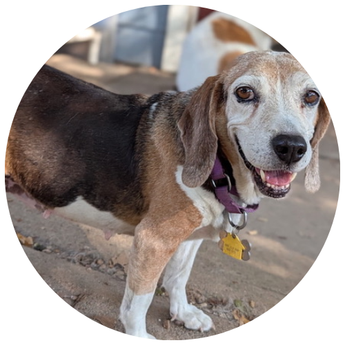 Senior boy Beebe is a Basset mix. He arrived at the Bungalow weighing 87 pounds! He has already lost over 15 pounds, but still has 30 more to go!! He is a happy boy and enjoys running to the call of a squirrel sighting! Maybe he will be ready to meet a new family next fall!