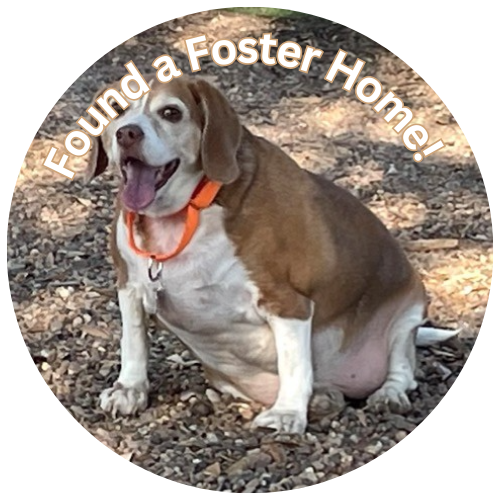 Tortilla 8 y/o boy who had been found stray and taken to a local shelter. Tortilla is about 14 inches tall and weighed 48 pounds when he was rescued! He could hardly walk and became short of breath after going 10 feet! Diet and chasing the beagle pack around the yard has trimmed him down enough that he now can join in on a good beagle chase. He has a ways to go but he should be ready for adoption later this summer!